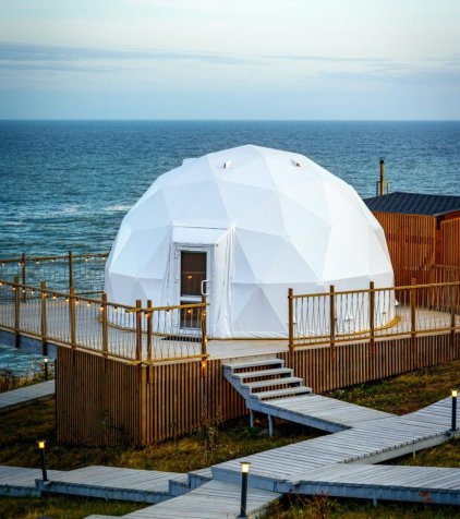 Наши геокуполы и барнхаусы созданы для тех, кто мечтает провести время в тишине и покое, наслаждаясь видом на бескрайние морские просторы. На территории глэмпинга Вас ждёт ресторан "Санторини", где шеф-повар готовит блюда авторской кухни с акцентом на местные продукты.