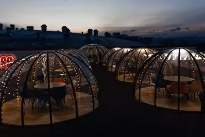 Необычный ресторан на крыше в купольных беседках с панорамным видом на город